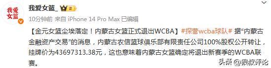 北京时间11月4日,根据媒体人“我爱女篮”的报道,据“内蒙古金融资产交易”的消息,内蒙古农信篮球俱乐部有限责任公司100%股权公开转让,挂牌价为43697313.38元,这也意味着内蒙古女篮确定将退出新赛季的WCBA联赛。
