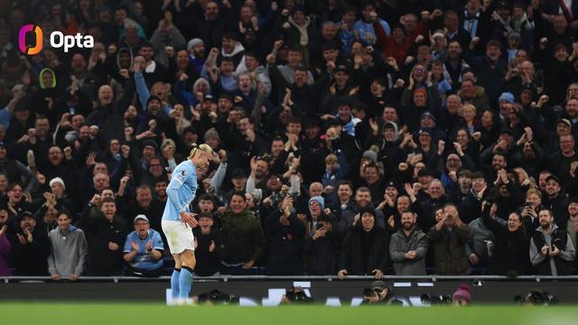 连续四场主场比赛至少打进两球,哈兰德为英超历史第三人